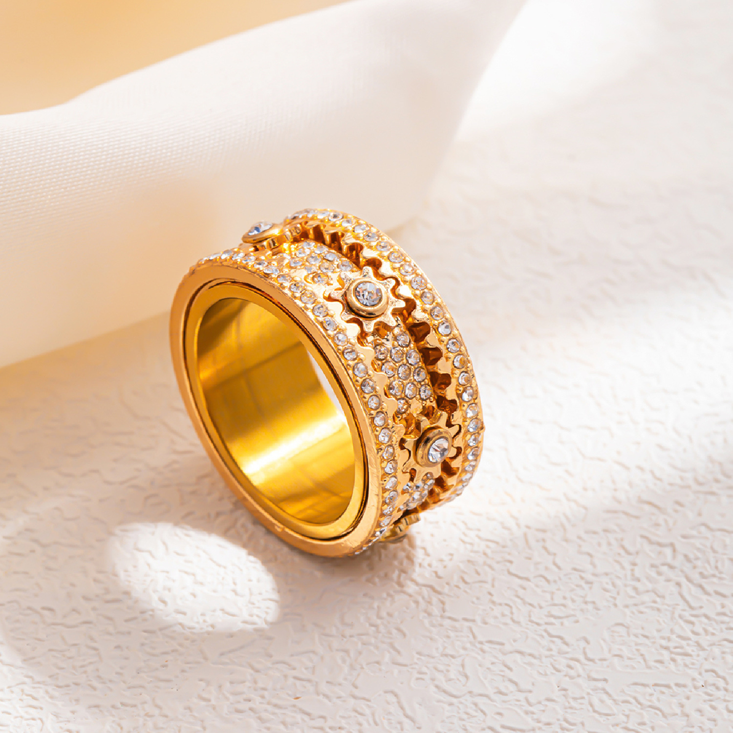 Fashionable zircon gear rotating ring for men and women (transfer ring) can relieve anxiety rotating ring